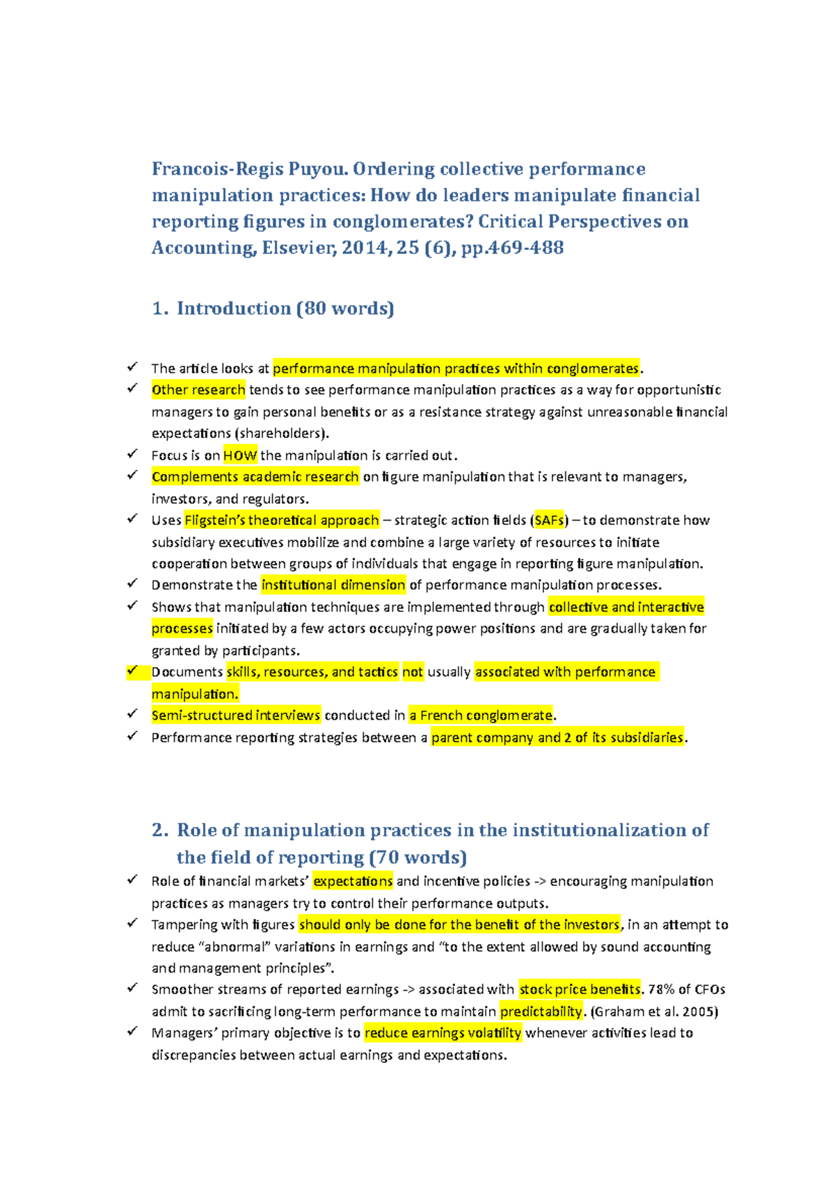 Ac302 Summary Ana Topa Francois Regis Puyou Ordering Collective Performance Manipulation Studocu